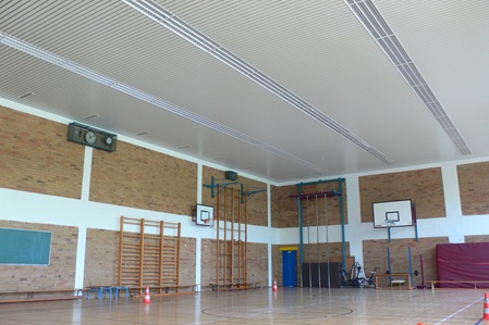 Odporne na uderzenia, podwieszane sportowe sufity ORIGINAL DOBNER składają się z lakierowanych ogniowo stalowych paneli, stalowych szyn nośnych oraz wieszaków Nonius – wszystkie elementy wykonane są z wytrzymałej stali ocynkowanej metodą Sendzimir.