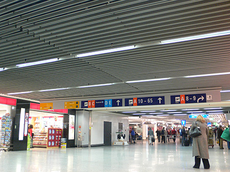 Sufity z pionowymi lamelami ORIGINAL DOBNER z lekkiego metalu łączą w sobie funkcjonalność, design i właściwości akustyczne, dzięki czemu mają uniwersalne zastosowanie. Szczególnie w przypadku dużych obiektów, takich jak lotniska, duże hale, salony wystawowe, hipermarkety i centra handlowe, sufit z pionowymi lamelami
