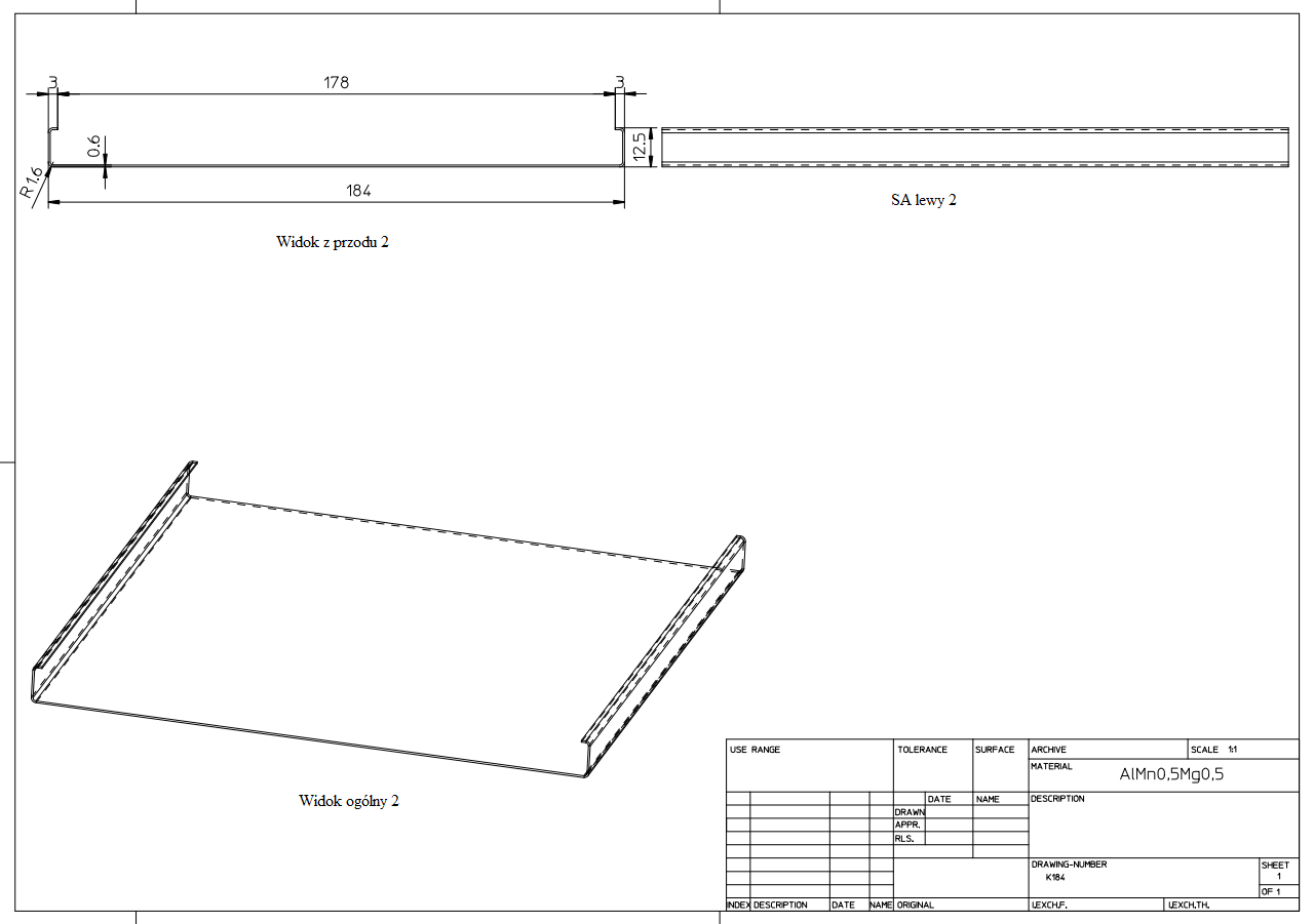 Sufit aluminiowy ORIGINAL DOBNER Typ K-184 / KP-184 z otwartym złączem