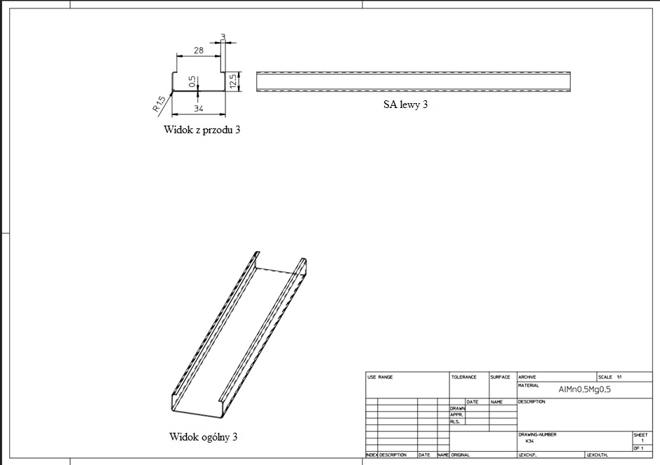 Sufit aluminiowy ORIGINAL DOBNER Typ K-34 / KP-34 z otwartym złączem