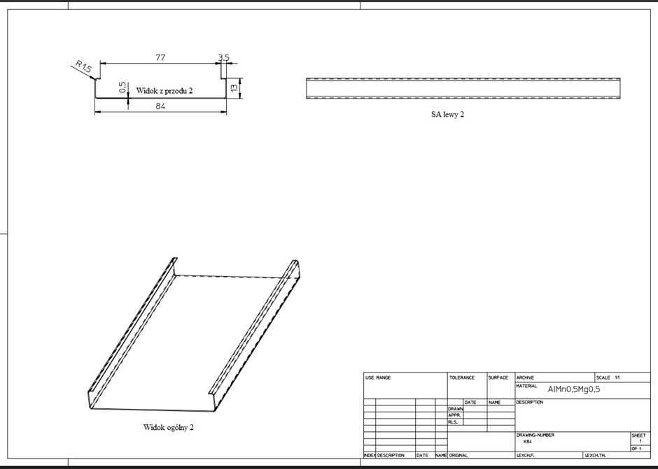 Sufit aluminiowy ORIGINAL DOBNER Typ K-84 / KP-84 z otwartym złączem