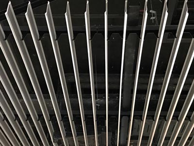 Sufit pionowy firmy Euracon - metalowy system sufitowy z taśmy aluminiowej