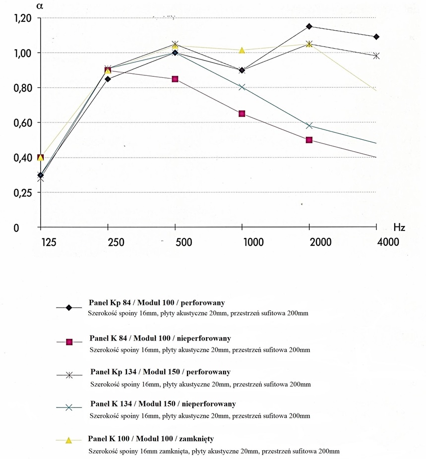 Sufity panelowe z aluminium – wykresy pochłaniania dźwięku