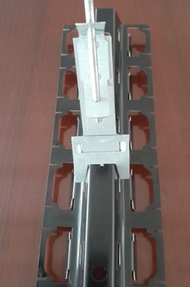 Równoległe, widoczne podkonstrukcje i szyny nośne muszą być precyzyjnie wyrównane względem siebie (najlepiej za pomocą linii laserowej lub kredowej). Szczególną uwagę należy zwrócić na wyrównanie modułów za istniejącymi połączeniami szyn nośnych. W przypadku pomieszczeń dłuższych niż 5,00 m, łączniki szyn nośnych wciska się w otwory wycięte w końcach szyn nośnych i mocuje. Gwarantuje to prawidłowy i wyrównany odstęp między szynami nośnymi.