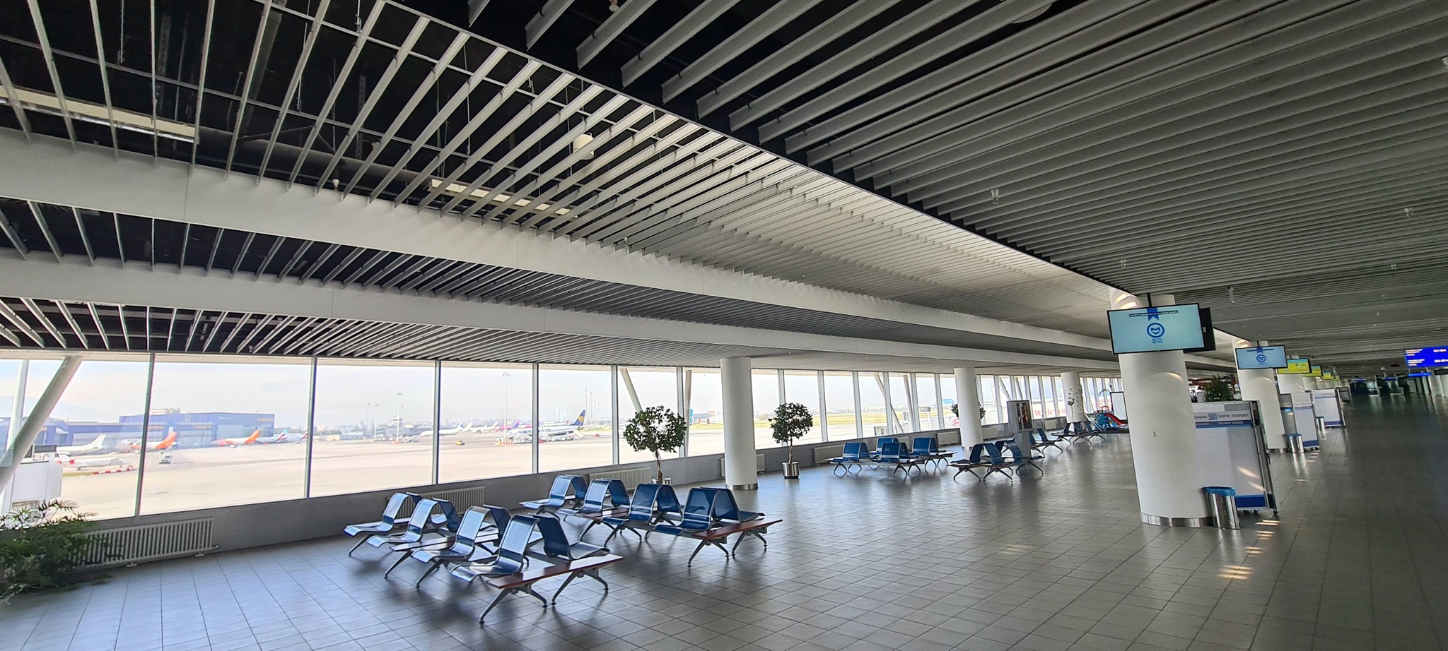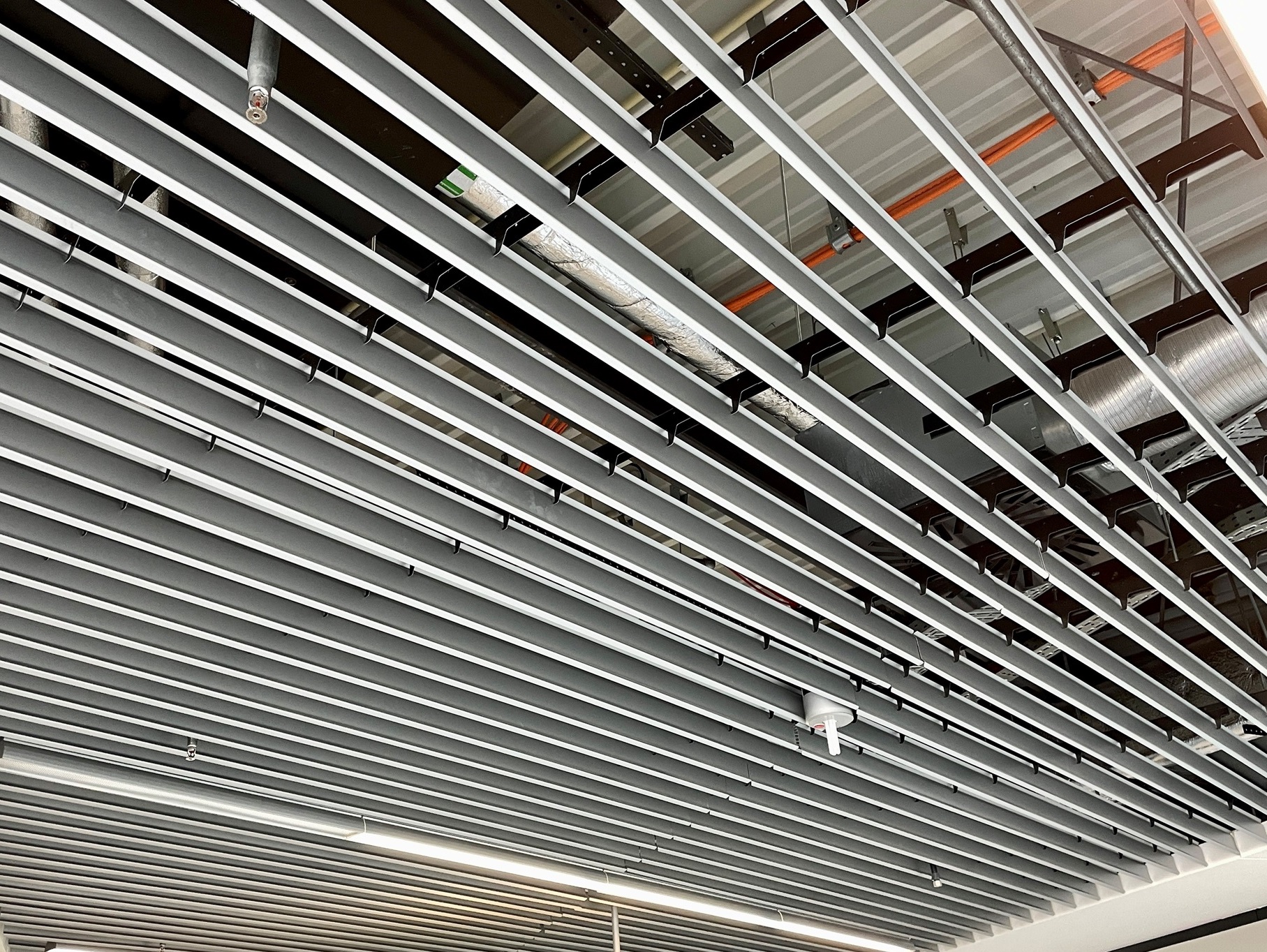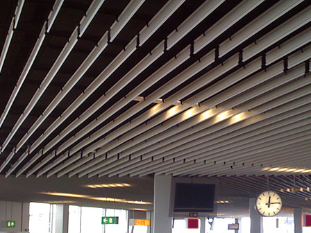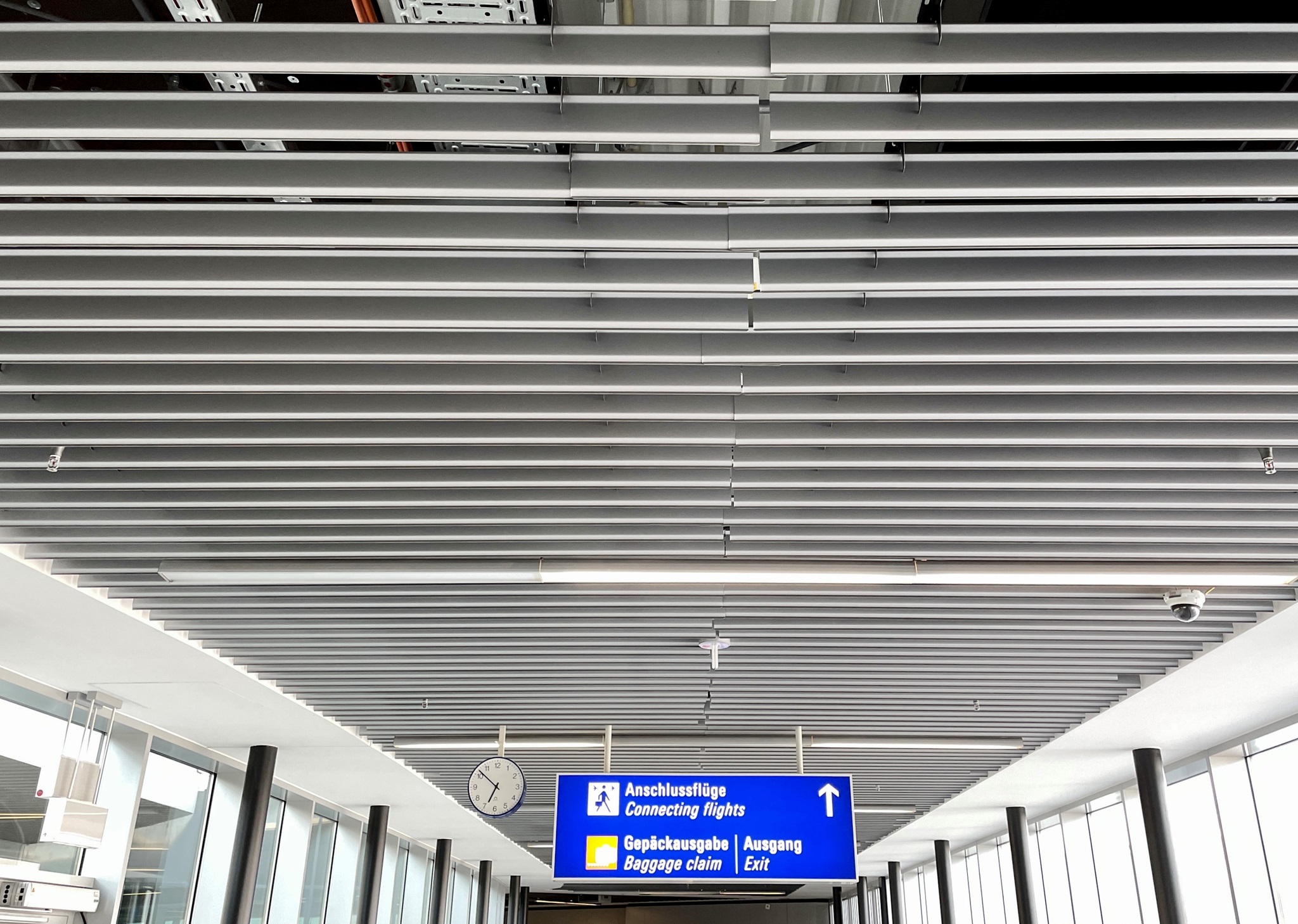 Sufity z pionowymi lamelami ORIGINAL DOBNER z lekkiego metalu łączą w sobie funkcjonalność, design i właściwości akustyczne, dzięki czemu mają uniwersalne zastosowanie. Szczególnie w przypadku dużych obiektów, takich jak lotniska, duże hale, salony wystawowe, hipermarkety i centra handlowe, sufit z pionowymi lamelami